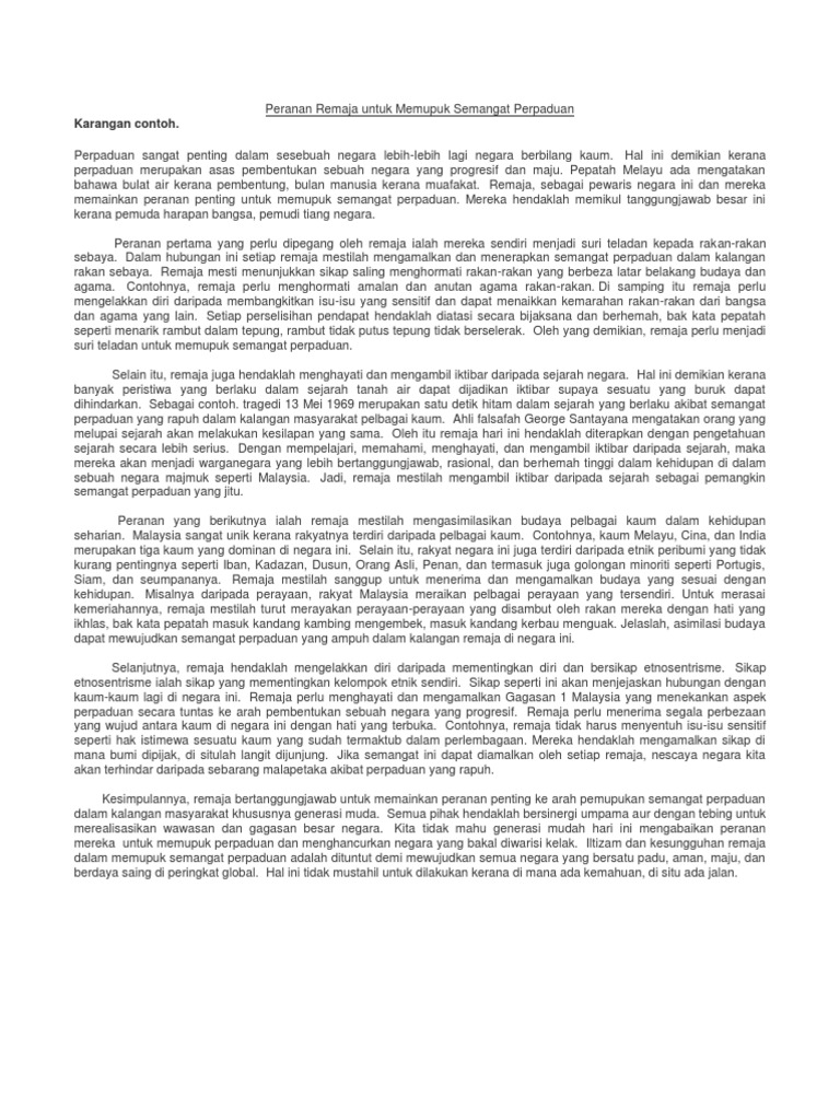 Rumusan Usaha Untuk Memupuk Perpaduan Dalam Kalangan Pelajar Dan Cabaran Yang Dihadapi Bahasa Melayu Spm Kertas 2